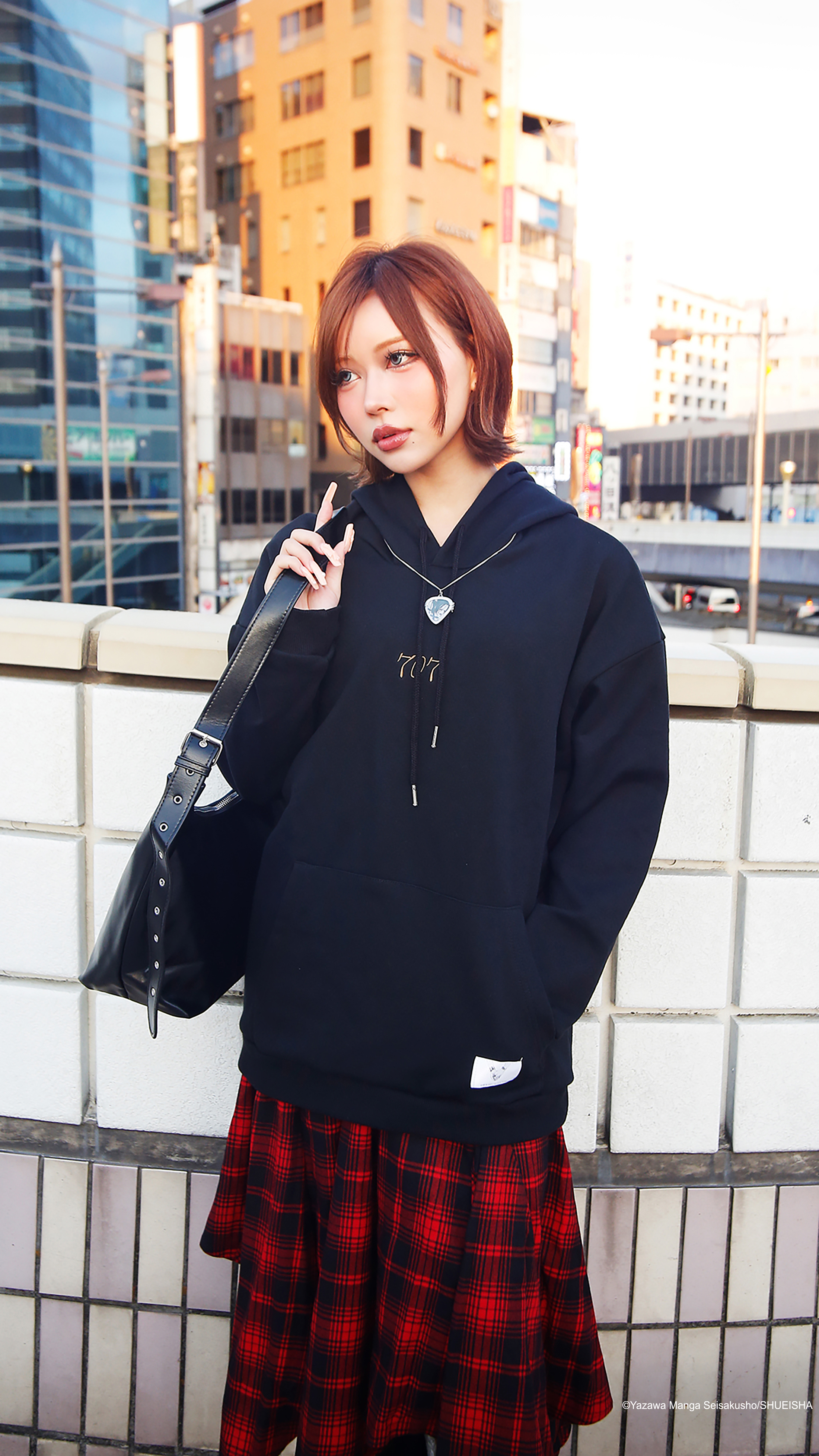 NANA レッドチェック アシンメトリーロングスカート