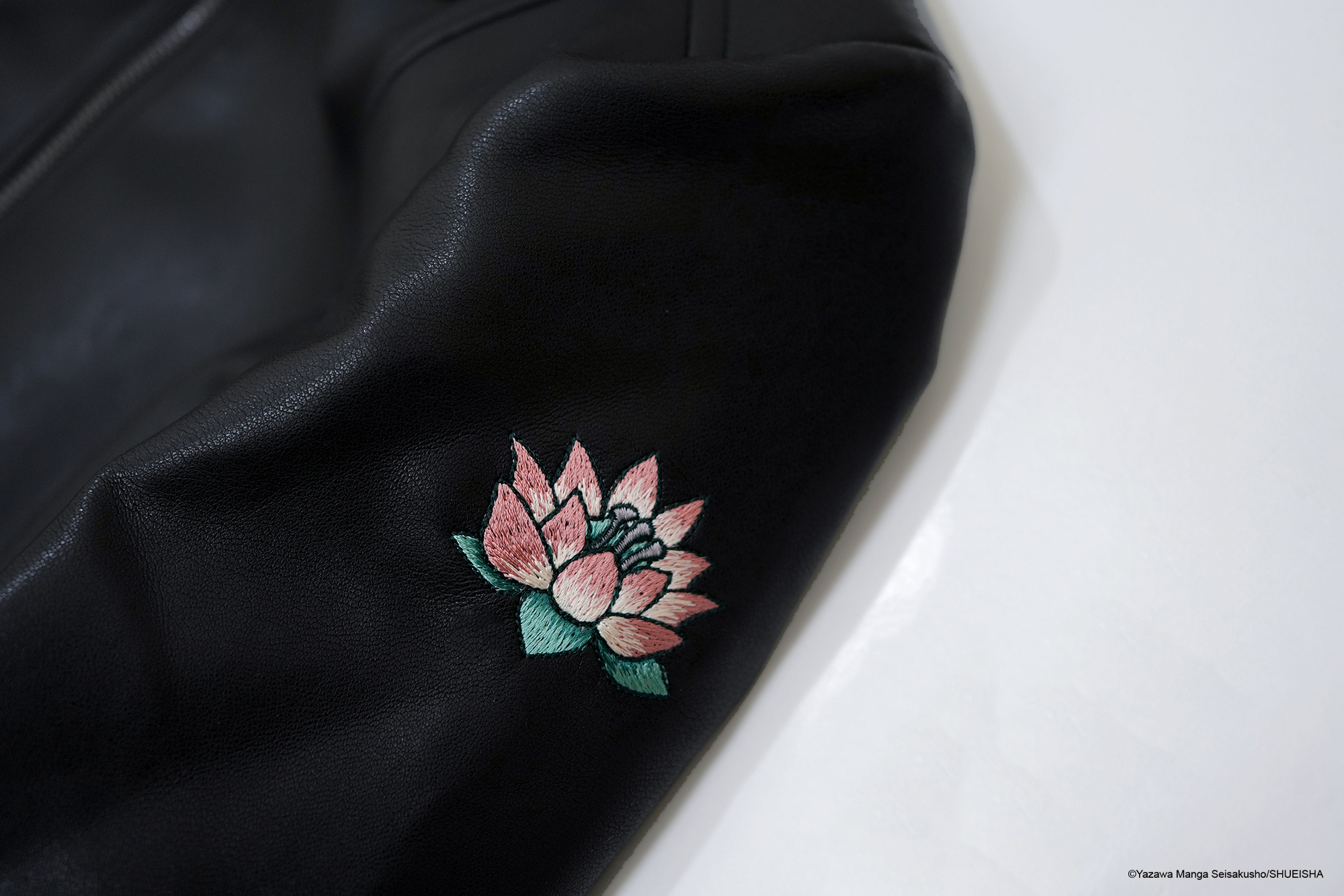‧左袖以色彩鮮明且細緻的刺繡,重現娜娜標誌性的「蓮花」刺青圖樣